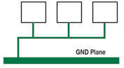 Um Plano de Terra (Ground Plane) de baixa indutância é fundamental para minimizar problemas de EMC. Maximizar as áreas de terra de uma PCB reduz a indutância de terra em um sistema, que por sua vez reduz as emissões eletromagnéticas e o Crosstalk.