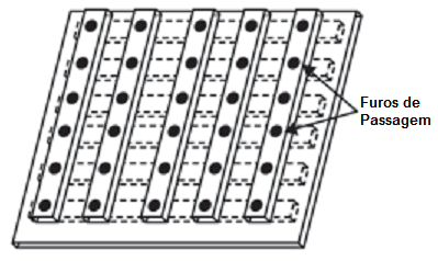 Existe algum diâmetro padrão para os furos de passagem da [Figura 3] e também uma medida padrão para distância entre furos? Como deve ser calculado isso?
