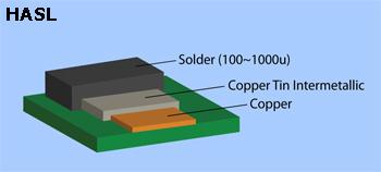 HASL (Hot Air Solder Level) – nivelamento de solda por ar quente – é o acabamento de superfície mais predominante na indústria. O processo consiste na imersão placas de circuito em uma liga de estanho / chumbo e, em seguida, remove-se o excesso de solda utilizando rajadas de ar, que sopram ar quente sobre a placa.