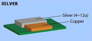 Baseado, também, no processo de imersão citado anteriormente, no entanto, o elemento utilizado aqui é a prata. No processo uma camada com espessura fina é aplicada, conferindo boa aderência no processo de solda e uma superfície plana. É um processo bastante viável em placas que possuem pequenas distâncias entre pinos (pitch).