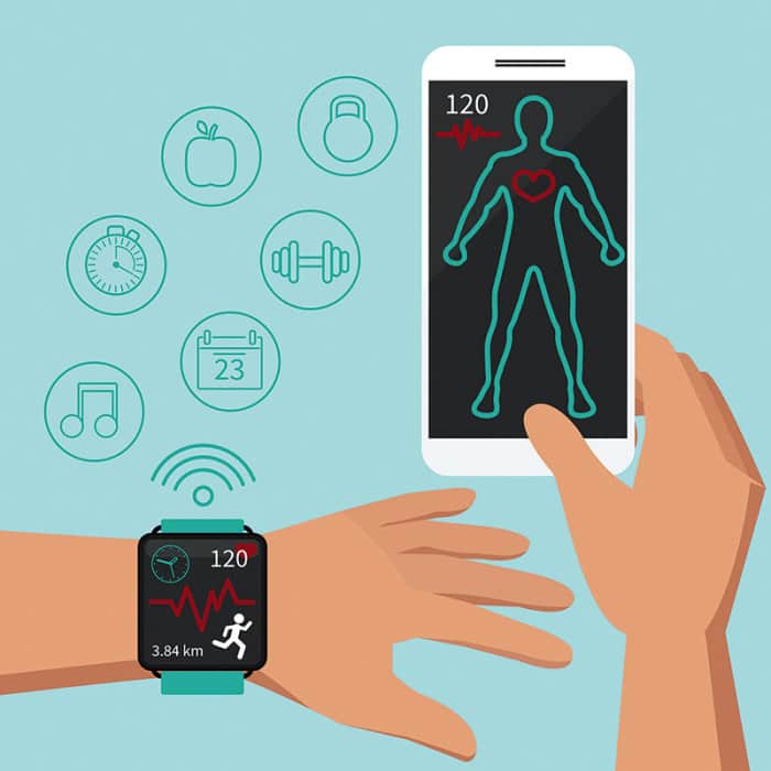 Desde os primeiros dias de um pedômetro mecânico a um smartwatch digital, as tecnologias de hoje começaram a integrar mais funcionalidades em um dispositivo e são de extremo valor para populações de pacientes de alto risco que sofrem de condições crônicas. Por exemplo, monitores de ECG vestíveis e monitores de pressão arterial também podem rastrear os sinais vitais de um indivíduo, armazenando até 100 leituras por vez. Sistemas de monitoramento mais sensíveis, como um adesivo usado por um paciente, podem reunir sinais vitais extensos, incluindo frequência cardíaca, temperatura e muito mais. A tecnologia de monitoramento de glicose agora permite que pacientes diabéticos monitorem seus níveis de açúcar no sangue onde e quando precisarem. Os recursos de EKG mais recentes de dispositivos de rastreamento de bem-estar permitem que os usuários detectem a fibrilação atrial, gerando dados que podem ser uma questão de vida ou morte para aqueles com histórico de problemas cardíacos (consulte a Figura 2).