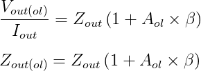 Neste ponto vemos que a impedância de saída em malha aberta será sempre maior que em malha fechada. Se isolarmos na equação a impedância em malha fechada, teremos: