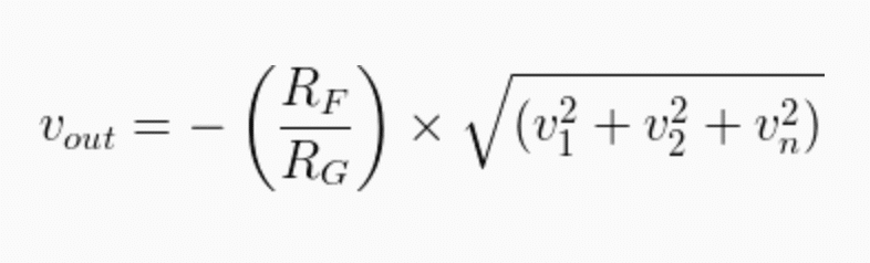 A equação a seguir apresenta a fórmula genérica utilizada para a configuração de amplificador somador inversor: