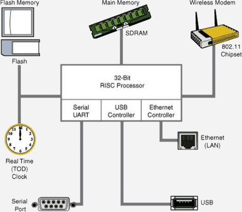 Vamos considerar um roteador Wi-Fi doméstico como exemplo de plataforma de hardware: