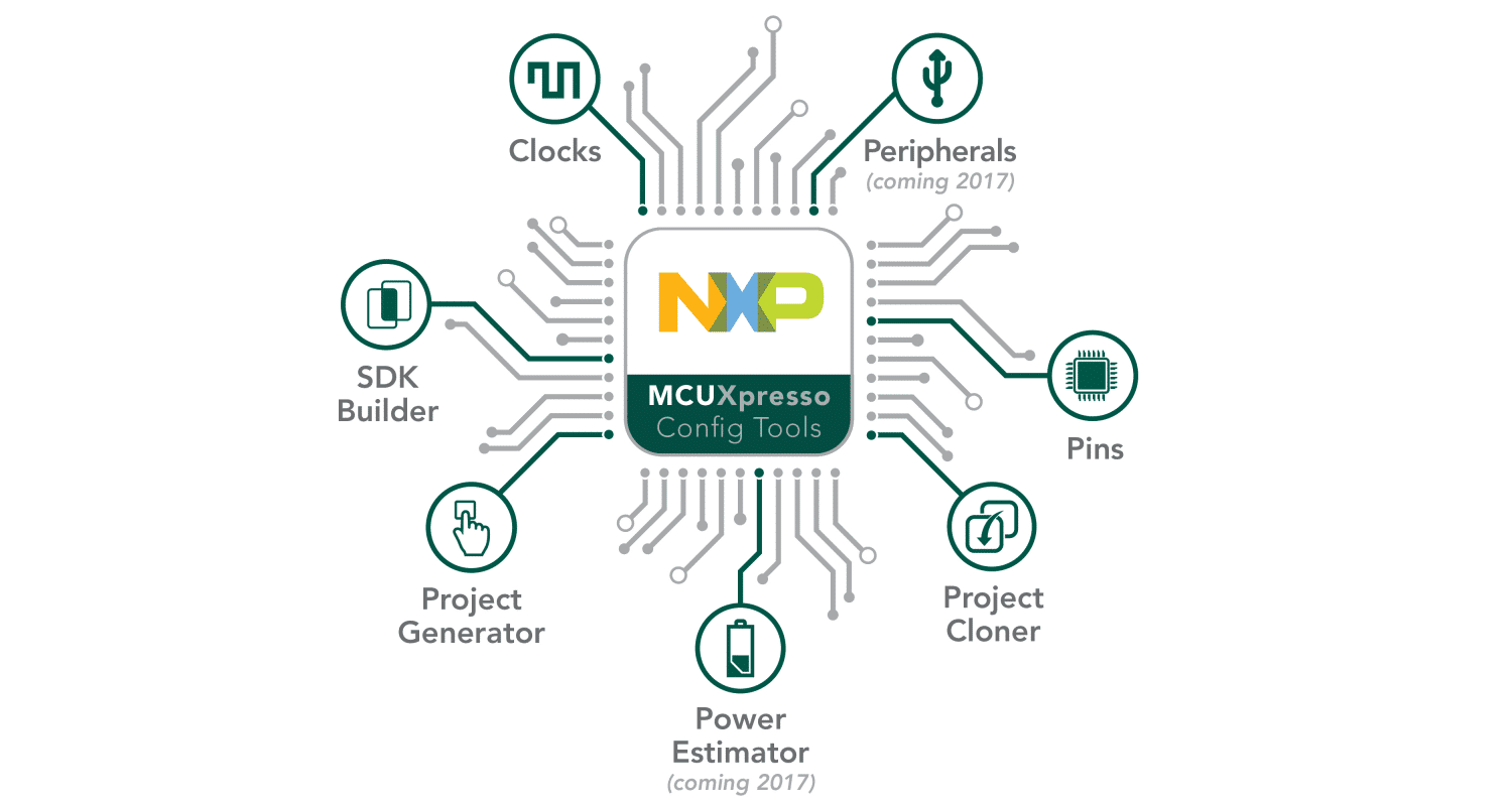 O MCUXpresso Config Tools e MCUXpresso SDK Builder estão disponíveis para Microsoft Windows 7/8/10, Ubuntu Linux e MAC OS X, e versão On-Line.