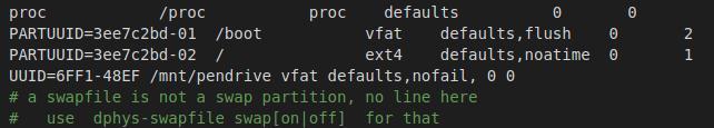 UUID=6FF1-48EF /mnt/pendrive vfat defaults,nofail, 0 0