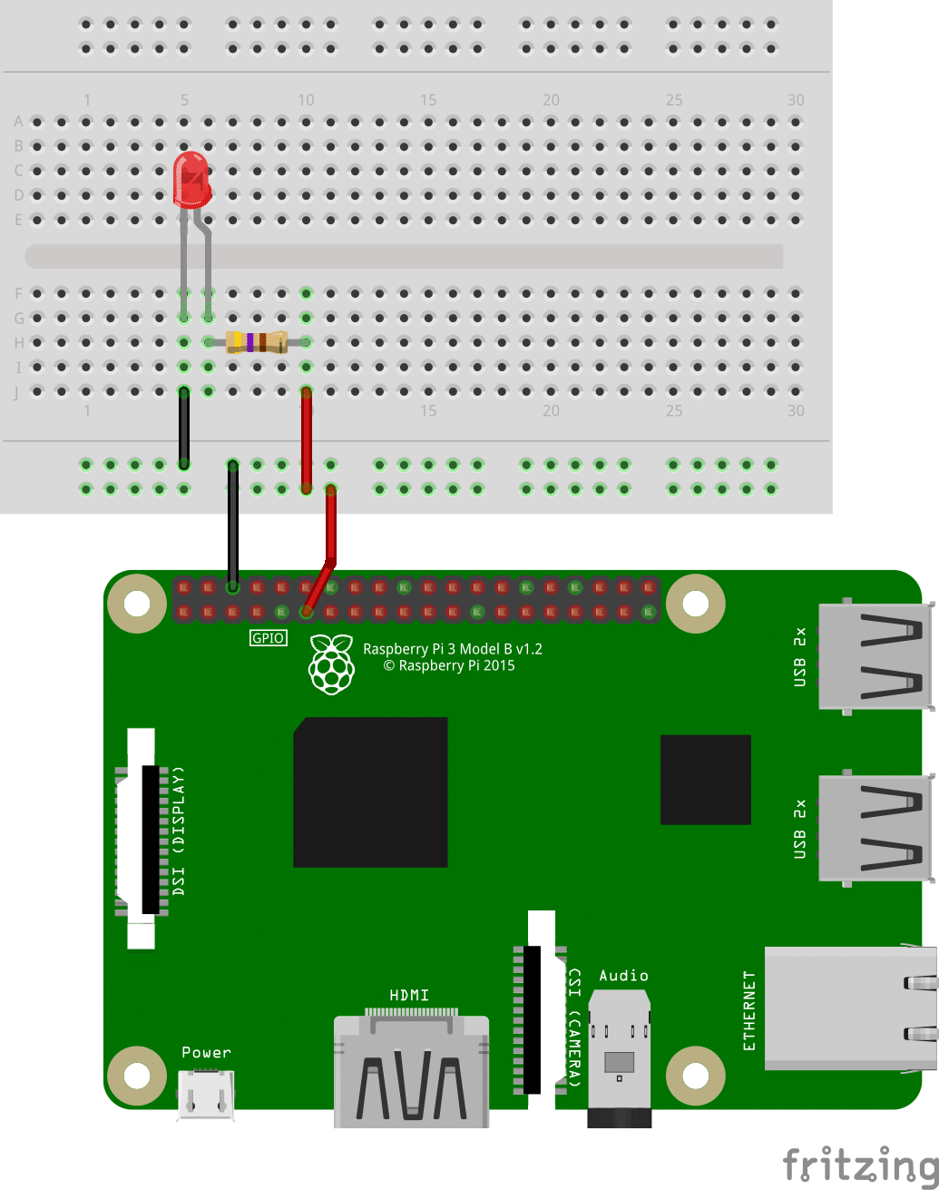 O circuito esquemático (Raspberry Pi 3B + LED sinalizador de update de Kernel) pode ser visto na figura 5.