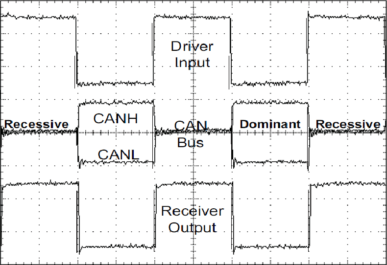 Uma característica fundamental da CAN é o estado lógico oposto entre o barramento e a saída do receptor conectada a entrada do driver. Normalmente, uma lógica alta é associada a um nível ‘1’, e uma lógica baixa é associada a um nível ‘0’; mas não em um barramento CAN. É por isso que os transceptores CAN têm internamente os pinos do driver de entrada e saída passivamente puxado-cima (pull-up), de modo que, na ausência de qualquer entrada, o dispositivo automaticamente assume um estado de barramento recessivo em todos os pinos de entrada e saída.