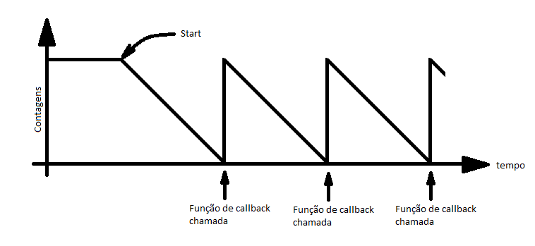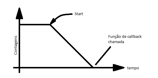 Como o nome diz, o one-shot timer irá contar de seu valor inicial, chamar a função de callback quando a contagem alcançar zero e parar. A figura 1 descreve a operação de um one-shot timer.