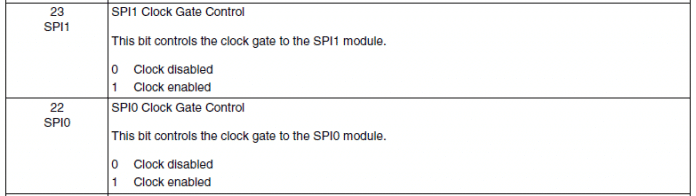 /* habilita clock*/ SIM_SCGC4 |= SIM_SCGC4_SPI0_MASK; // Habilita Clock para SPI0 SIM_SCGC4 |= SIM_SCGC4_SPI1_MASK; // Habilita Clock para SPI1