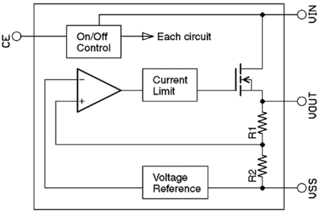 No entanto, há uma pequena quantidade de fluxo de corrente no divisor de tensão do regulador. Essa corrente fluirá de seus +3,3 Volts para o terra (VSS), através das resistências internas R1 e R2 do regulador. Essas resistências são altas e a corrente envolvida é insignificante. Mas esteja ciente disso ao medir a corrente para aplicações de bateria com consumo de energia muito baixo.