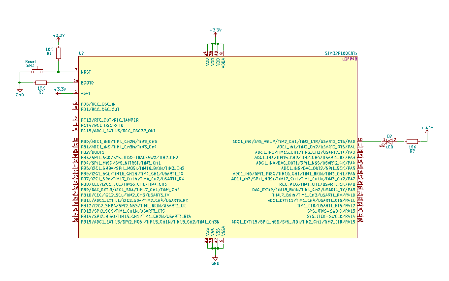 Vamos assumir uma placa o mais simples possível, como exemplo usando o STMF100C8 para nosso código. Ela tem apenas o microcontrolador e um led e…adivinhe! Sim, vamos piscar esse led: