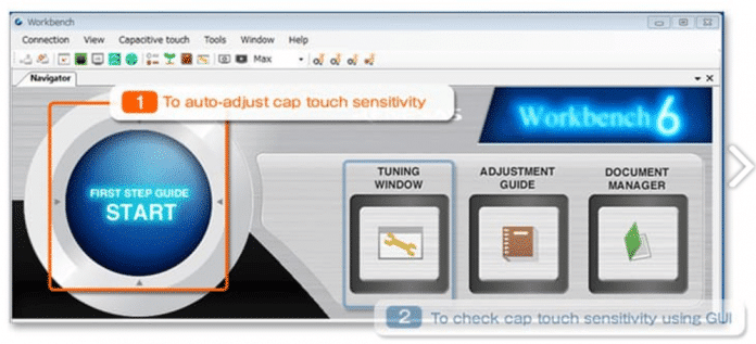 A Renesas disponibilizou uma ferramenta chamada de WorkBench6, integrada com a IDE de desenvolvimento e2Studio, que permite fazer o tuning de sua aplicação e customizar como o touch capacitivo vai funcionar.