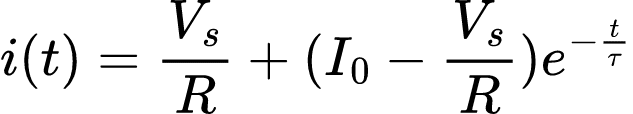A resposta pode ser a soma da resposta transiente e a resposta em regime estacionário, já mencionadas no artigo sobre circuito RC, logo: