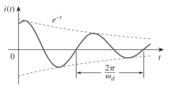 Como a equação inicial encontrada é linear, a solução completa de i é uma combinação linear de i1 e i2. Logo, a resposta natural do circuito RLC em série: