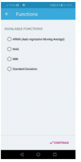 Após a seleção do sensor, a tela de funções lista as funções disponíveis para os sensores habilitados. Para o sensor de temperatura, por exemplo, as funções disponíveis são mostradas abaixo.