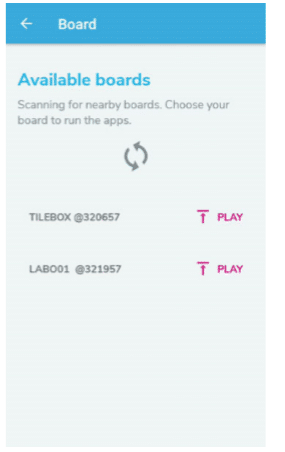 Passo 3. Selecione um dos aplicativos com da lista. Depois de selecionar o aplicativo, o ST BLE Sensor irá escanear via BLE dispositivos SensorTile.box disponíveis em alcance.