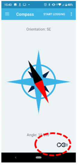 Para habilitar a calibração do magnetômetro, você precisa tocar no símbolo destacado na imagem abaixo.