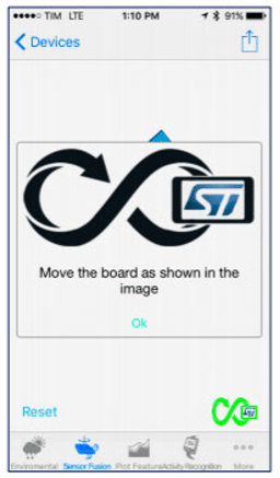 O aplicativo é baseado no algoritmo de firmware de fusão de sensores (biblioteca MotionFX) incorporado no MCU Sensortile.box.