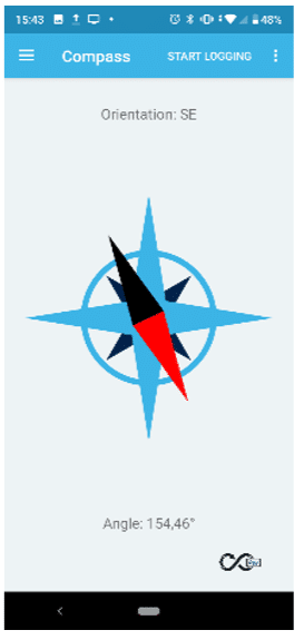 STBLESensor Compass and Level app – tela de orientação: