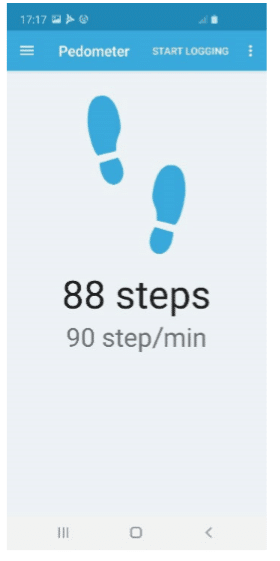 Para evitar contar passos falsos positivos, a contagem de passos começa após 10 segundos de caminhada constante (tempo de debounce); após esse tempo, o algoritmo mostra os passos e continua contando a partir do número de etapas já acumuladas durante o tempo de debounce.