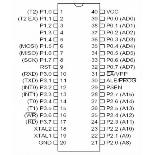 | Atmel | AT89S51 | 128 Bytes | 4 KBytes | 2 MIPS @ 24MHz |