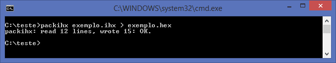 Embora não seja fundamental, algumas linhas do arquivo IHX criado podem não estar alinhadas. Isso pode causar problemas na hora da gravação. Dessa forma, é conveniente reempacotar o arquivo, de forma a deixar a memória alinhada. Para isso, o SDCC possui uma ferramenta chamada PACKIHX. Podemos executar essa função com a linha abaixo: