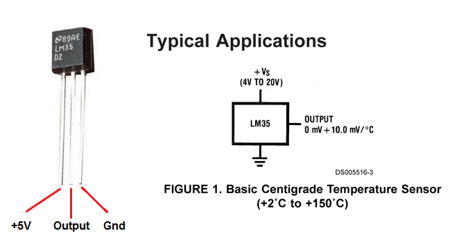 Suponhamos que o nosso desejo seja, utilizando um ARDUINO, medir temperaturas entre 10 e 60 ºC, com uma precisão de ± 1 ºC dentro dessa faixa. Um sensor de temperatura bastante popular e adequado para essa função é o LM35 de fabricação da Texas Instruments. Ele possui uma função linear de transferência na saída de 0 + 10 mV/ºC. No nosso exemplo, a excursão do sinal de saída do sensor será de 100 a 600 mV. O sensor, no encapsulamento TO-92(3), está ilustrado na Figura 3.