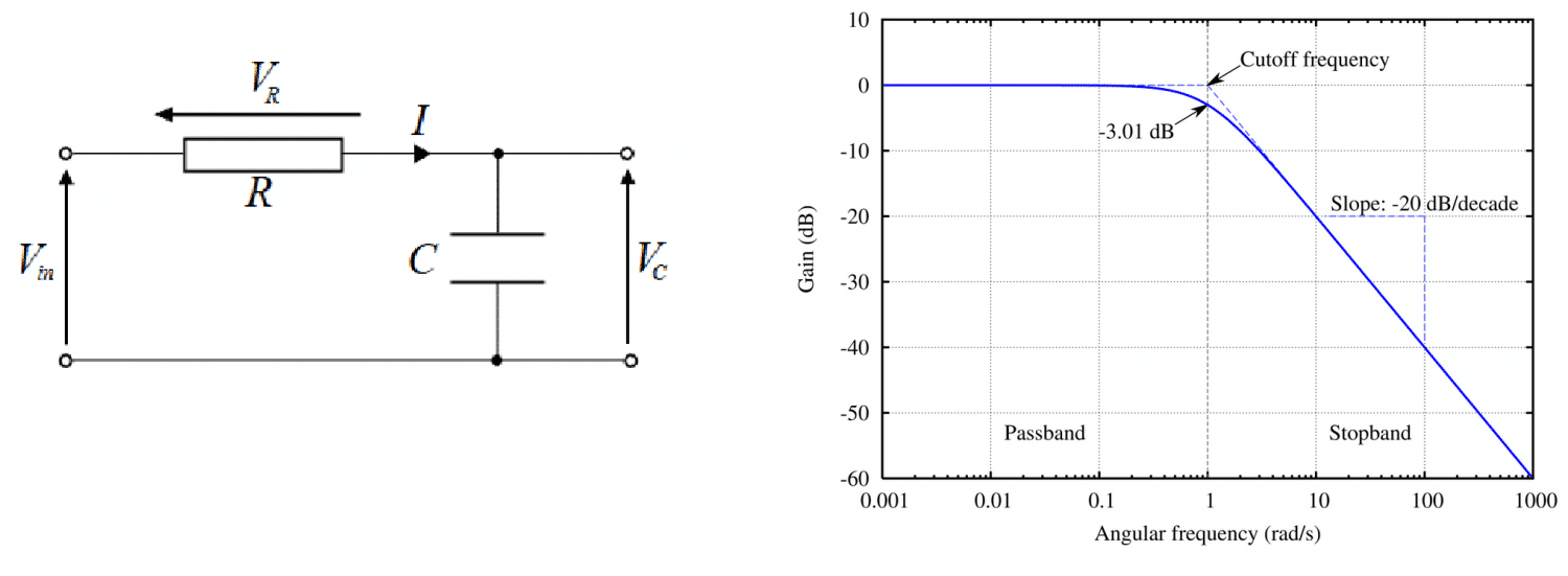 O último item a ser projetado é o filtro anti-aliasing, que nesse caso pode ser um simples circuito RC do tipo passa-baixas. Veja na Figura 10 o circuito típico e sua resposta em frequência.