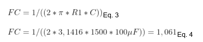 Para controlar os ruídos, foi utilizado um filtro passa-baixa composto por um capacitor de 100 µF e um resistor R1. A frequência de corte (FC) foi determinada por cálculo, permitindo atenuar sinais de alta frequência indesejados.