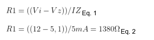 O cálculo resultou em uma resistência de 1380 Ω, assim, sendo utilizado um resistor comercial de 1K5 (1,5 kΩ).