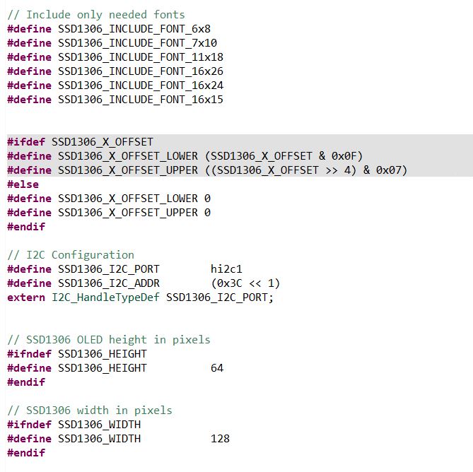 - Abra o arquivo ssd1306.h. Nele temos algumas configurações que podem ser ajustadas.