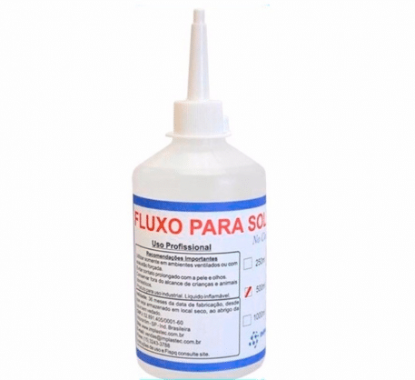 Em algum momento você pode precisar de fluxo de solda. O fluxo de solda facilita o processo de soldagem e também pode ser usado para remoção e limpeza da oxidação formada em soldas e terminais de componentes.