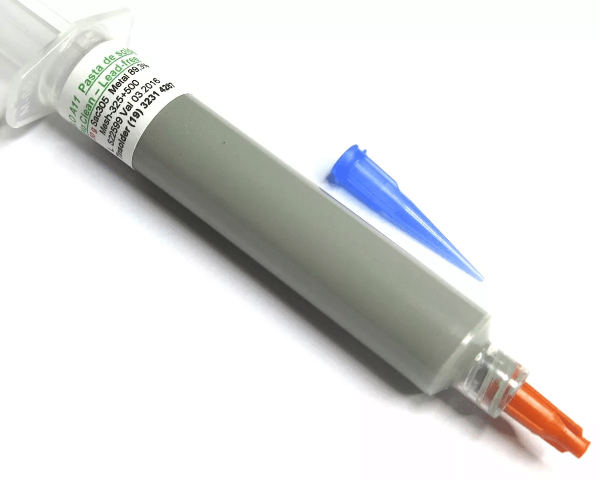 Se você vai trabalhar com soldagem de SMD’s é interessante ter um tubo de solda em pasta. Porém é importante observar que esse produto requer uma temperatura de armazenamento e tem validade.