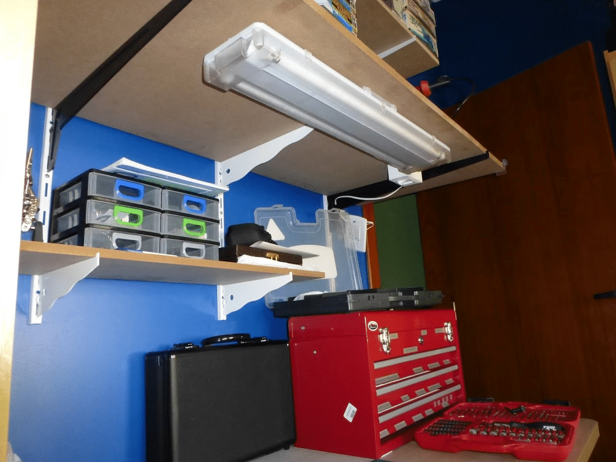 Um boa área de trabalho ajuda bastante durante o desenvolvimento, testes e manutenção eletrônica. Infelizmente não são todos que possuem uma garagem ou um espaço bacana em casa para uma bancada. Sendo assim, é importante otimizar o espaço para a bancada, que pode ser muito bem aproveitado, até mesmo dentro de um apartamento.