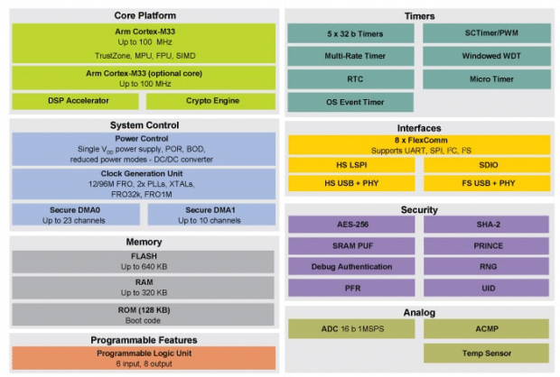 A LPC55S69-EVK possui uma porta de depuração onboard de alto desempenho, subsistema de áudio e acelerômetro, com várias opções para adicionar placas de expansão prontas para redes, sensores, telas e outras interfaces. O MCUXpresso fornece drivers de dispositivos, middleware e exemplos para permitir rápido desenvolvimento, além de ferramentas de configuração e IDE opcional. Atualmente ela vem sendo vendida pelo valor de 39 dólares.
