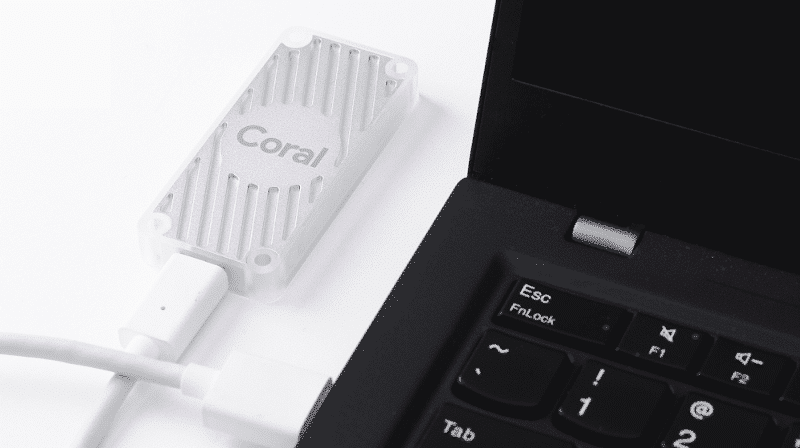 O Stick Coral, USB Accelerator, possui seu ASIC personalizado, o que o torna fácil de usar parecendo um disco flash. Possui um soquete USB 3.0 Type-C para dados e energia, mas também é fornecido com um cabo A para USB-C. Além disso, funciona com Raspberry Pi, embora tenha velocidade USB 2.0, qualquer plataforma Arm, ou x86 de 64 bits, suportada pelo Debian Linux.