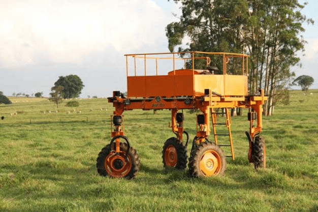 Na Escola de Engenharia de São Carlos (EESC), Universidade de São Paulo (USP), existem dois robôs móveis autônomos em desenvolvimento para coleta de dados e suporte à Agricultura de Precisão (figura 1), ambos com quatro rodas com tração independente. A velocidade e o esterçamento das rodas são controlados individualmente por controladores independentes interligados a uma rede CAN baseada nos padrões SAE J1939 e ISOBUS. Já a coordenação de movimentos das rodas para locomover o veículo, denominado no contexto desse projeto como controle de condução, é feito por um computador embarcado em cada robô. Esse computador embarcado se conecta à rede CAN para se comunicar com os controladores individuais das rodas e assim locomover o robô e esterçar suas rodas sem problemas de arrasto, utilizando os princípios da direção de Ackerman.