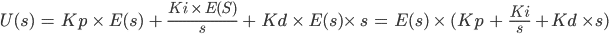 O grande problema para implementação de um compensador desses está no fato deste consistir em uma equação envolvendo uma integral e uma diferenciação de uma função desconhecida, sendo difícil estimar seu comportamento e muito menos os melhores valores para os coeficientes que forneçam uma resposta adequada para isso. Então talvez seja melhor analisar seu comportamento em outro domínio certo? Por que não o domínio da frequência? Vamos recorrer a um recurso matemático bem conhecido por engenheiros de controle, a transformada de Laplace. Com ela podemos modificar essa equação para uma forma mais simples e resolver utilizando álgebra no lugar de cálculo. Devido ao objetivo prático desse artigo não entraremos em detalhes da matemática envolvida para esse recurso, assim, buscaremos as respectivas transformadas dessa equação utilizando a tabela básica de transformadas, que pode ser encontrada em referências como OGATA(2010) e NISE(2010).
