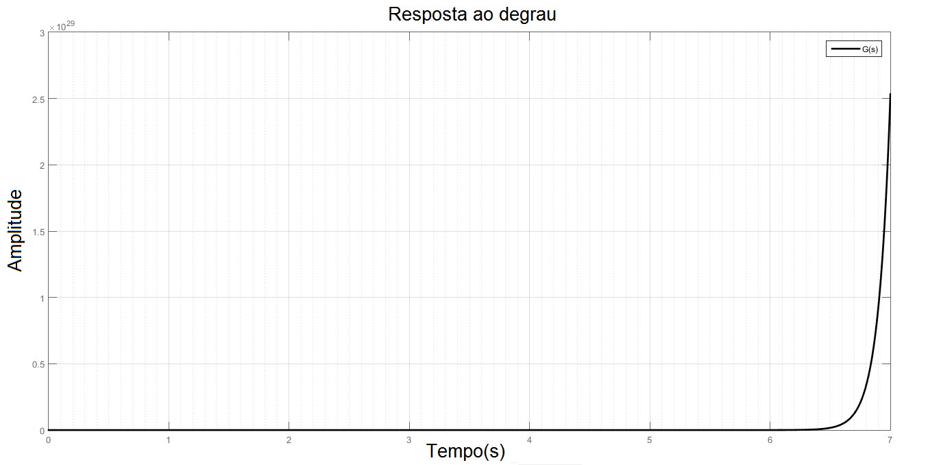 Como o leitor pode perceber, para uma análise mais fácil de entender a resposta do sistema foi levada ao domínio do tempo (utilizando a Transformada Inversa de Laplace), onde é possível observar o comportamento da resposta ao longo do tempo. Observe que a saída do sistema Saída(t) possui uma componente exponencial cujo argumento é o fator 10t (correspondente ao polo em 10). Isto quer dizer que, conforme o tempo vai passando, esta saída será cada vez maior em virtude deste elemento.