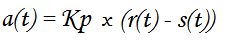 Sabendo o princípio de funcionamento do controlador proporcional, pode-se analisar o mesmo matematicamente. Levando-se em conta a proporcionalidade direta entre o sinal de controle e o sinal de erro, torna-se válido afirmar que: