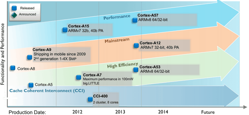 Na figura 1 podemos conferir a evolução dos principais processadores da ARM.