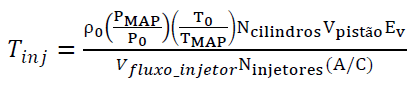 Substituindo a equação 2 na equação 1, é possível chegar à equação que determina o tempo de injeção em função da massa de combustível seguindo a estratégia speedy-density.