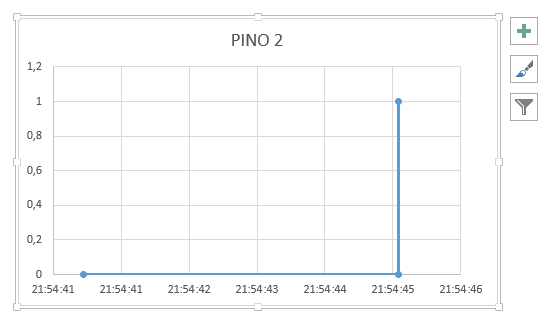 Observe na figura 6 que em um primeiro momento o estado da saída digital do pino 2 é 0, no entanto, em um segundo momento, a mesma saída apresenta nível lógico alto. Por este motivo, o gráfico é plotado como uma linha inclinada ascendente (neste caso).