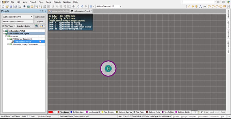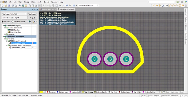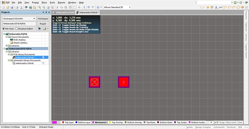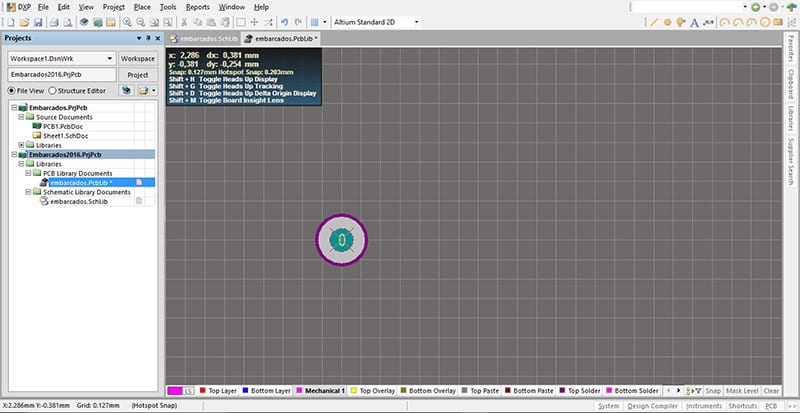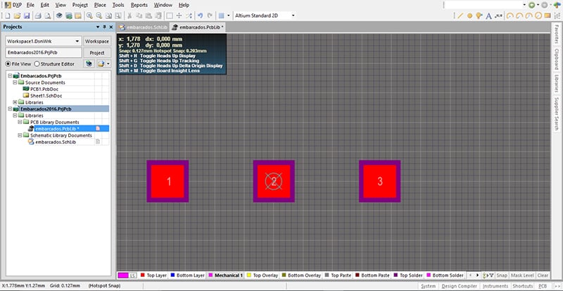 Para criar os componentes estarei utilizando o Altium Designer 15. Vamos criar dois tipos de componentes, PTH (Pin Through Hole) e SMD (Surface Mounting Device).