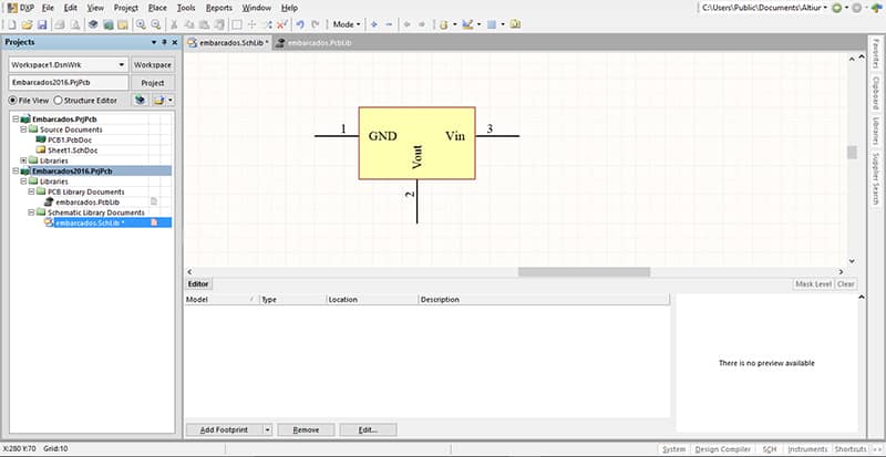 Um ponto negativo que o Altium apresenta é a falta de componentes no seu repositório. O fabricante até disponibiliza em seu site uma biblioteca de pouco mais de 300 MB, mas mesmo assim muitos componentes que vocês forem utilizar nos projetos não estarão na biblioteca e a solução será criá-los. Então, mãos á obra!
