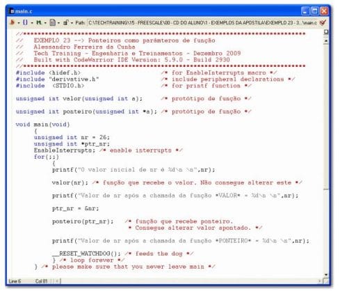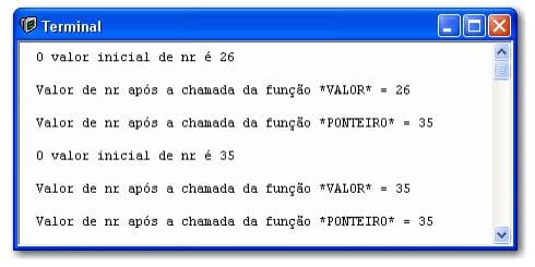 Note que são chamadas as funções valor(nr) e ponteiro(prt_nr), mostradas na janela a seguir: