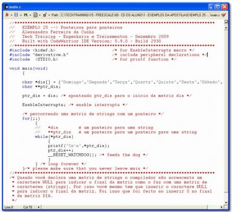 Outra utilização excelente dos ponteiros é o caso de ponteiros para ponteiros, como mostrado no EXEMPLO 25, que quando for executado gerará as seguintes mensagens no TERMINAL IO: