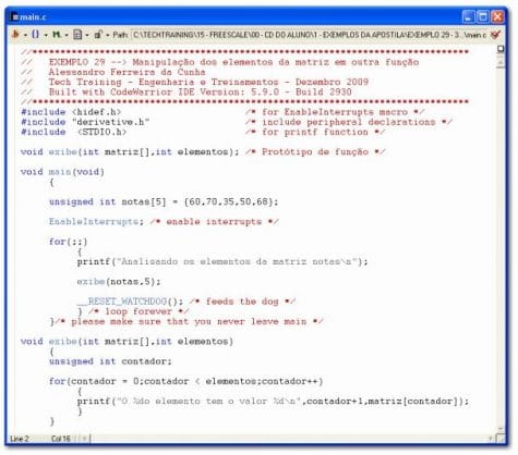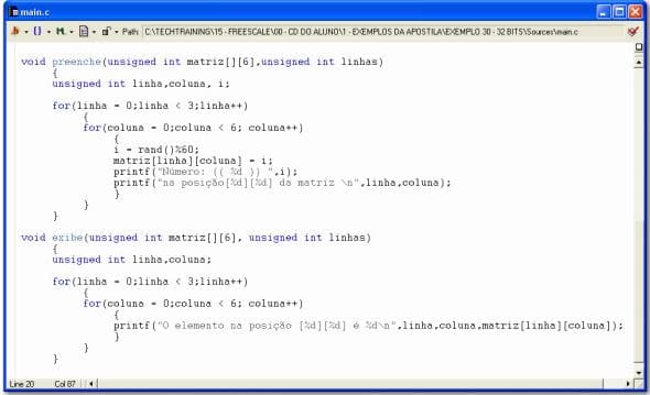 Uma função que manipula uma matriz bidimensional deve receber a matriz e o número de linhas desta matriz. O número de colunas da matriz também deve estar especificado nesta declaração. Ao chamar a função, deve-se passar a matriz e o número de linhas. Como isto funciona? Veja o programa EXEMPLO 31: