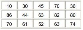 int pesos [3][5] = {{10,30,45,70,36},{86,44,63,82,80},{70,61,52,63,74}};